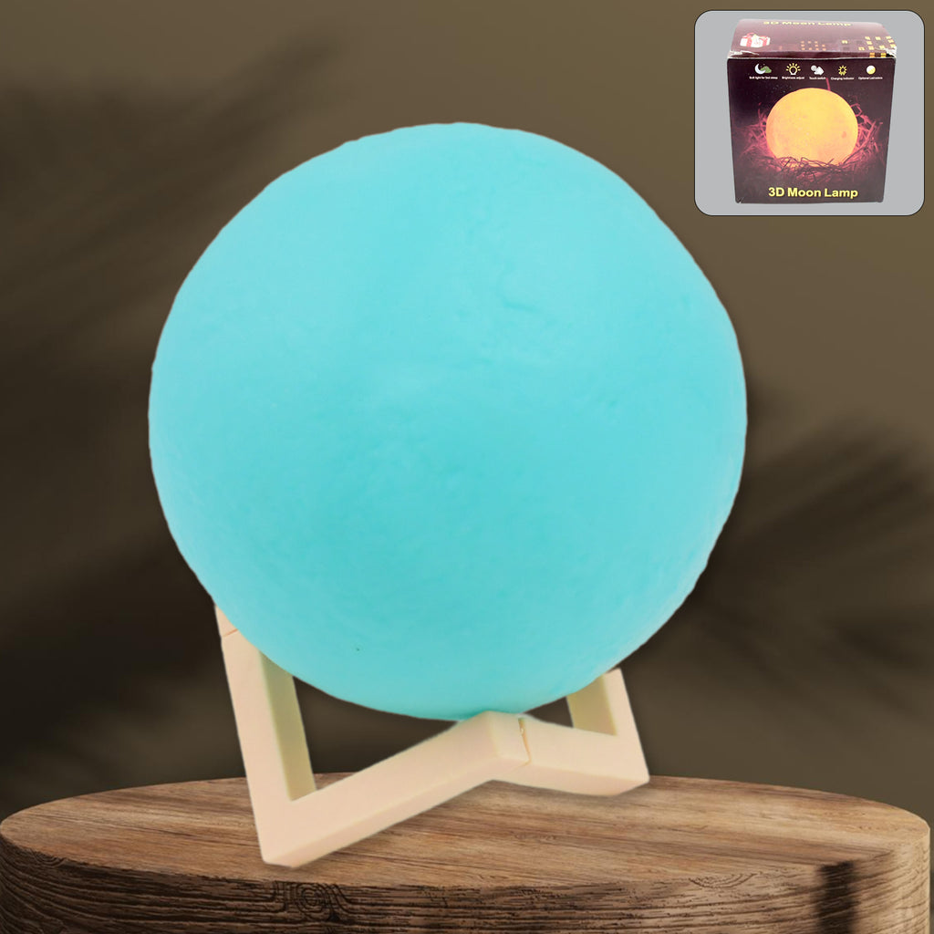 Moon Night Lamp Blue Color with Plastic Stand Night Lamp for Bedroom (15 x12 Cm / 1 Pc)